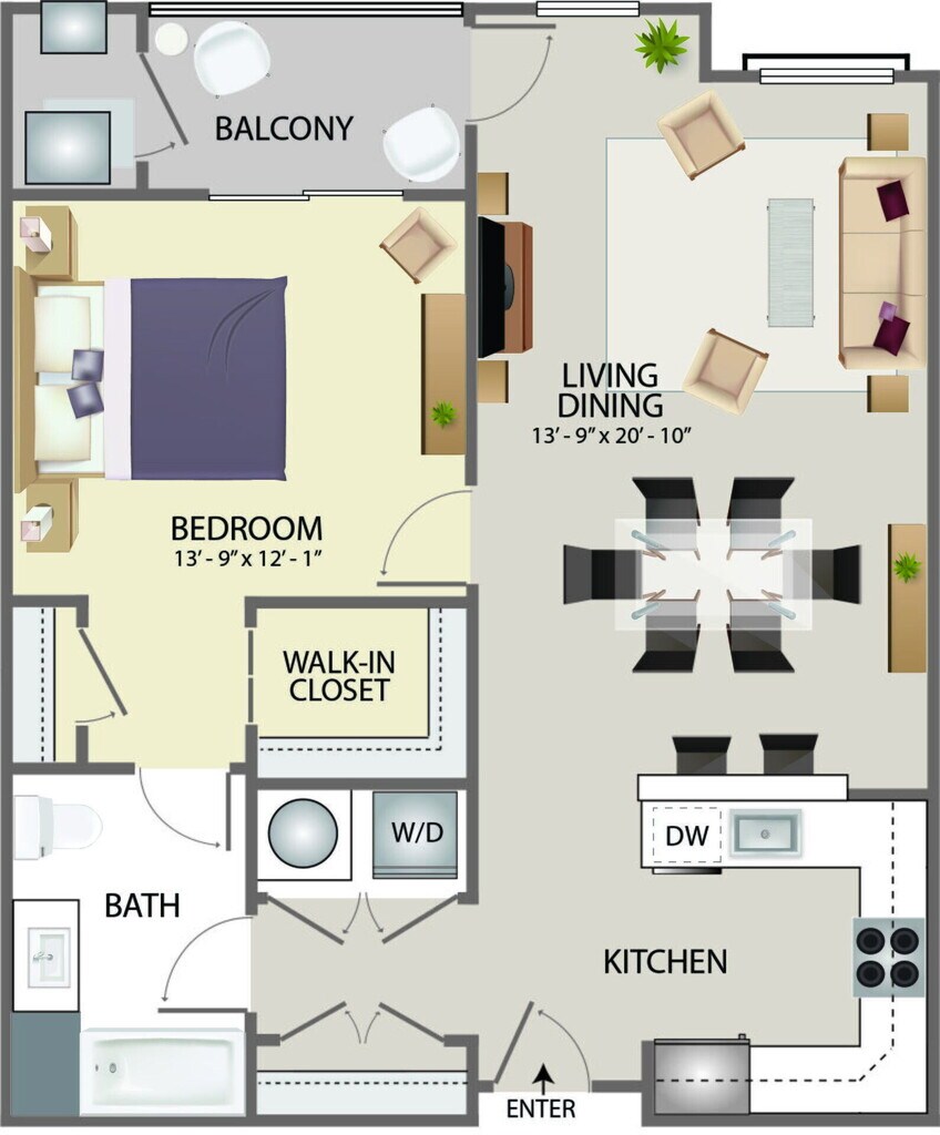 Modelo de apartamento: Reserve A1$2,100Estudio, 1 Baño, 527 sq ftNo Disponible![]()