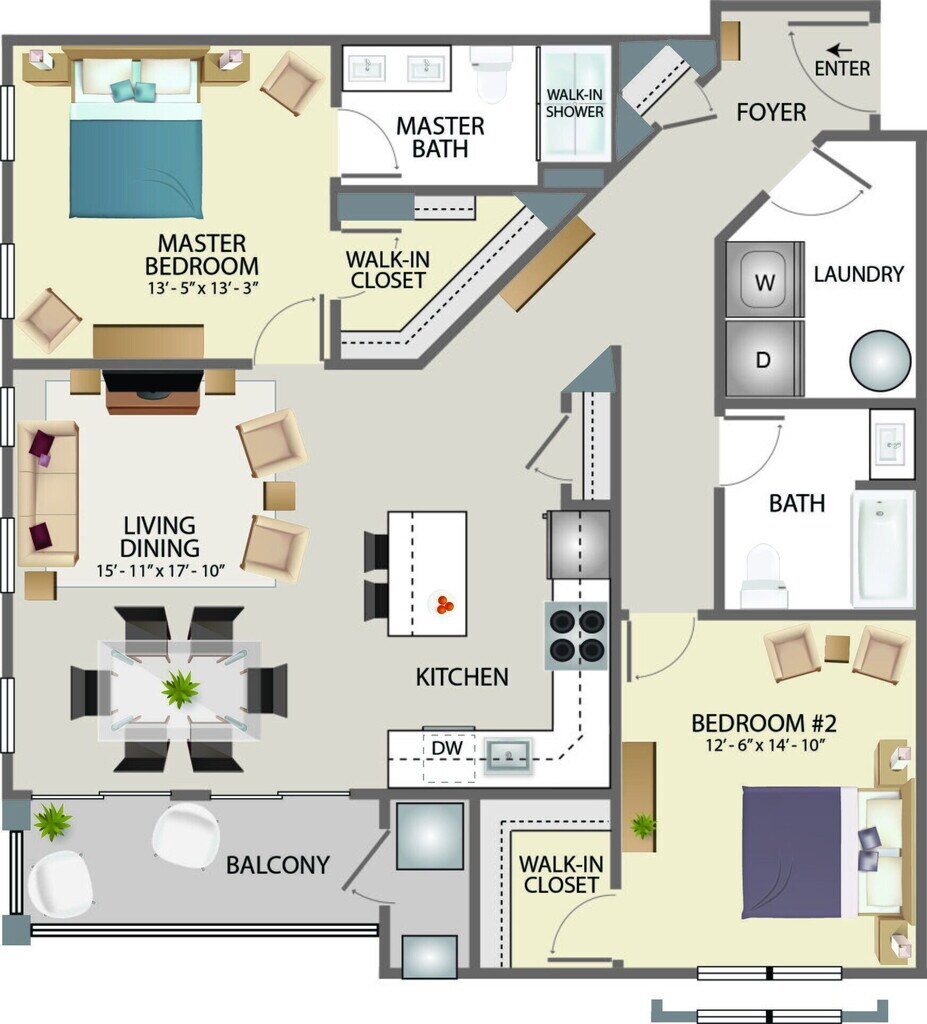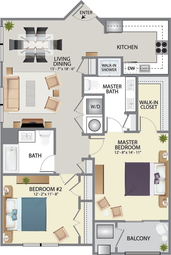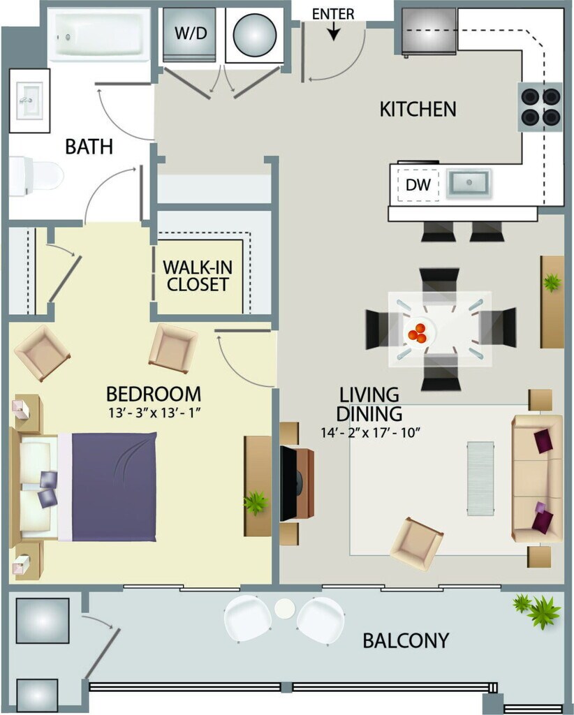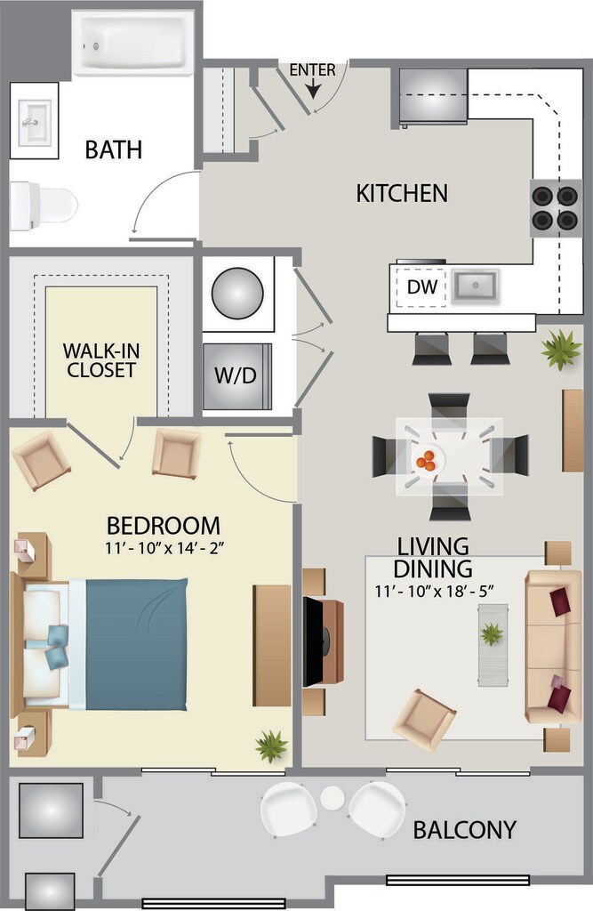 Modelo de apartamento: Reserve A2Desde $2,150Estudio, 1 Baño, 588 sq ftNo Disponible![]()