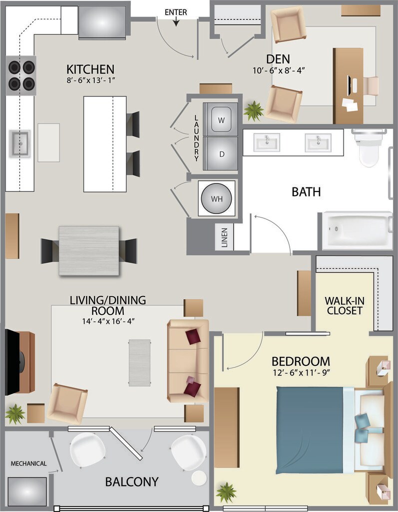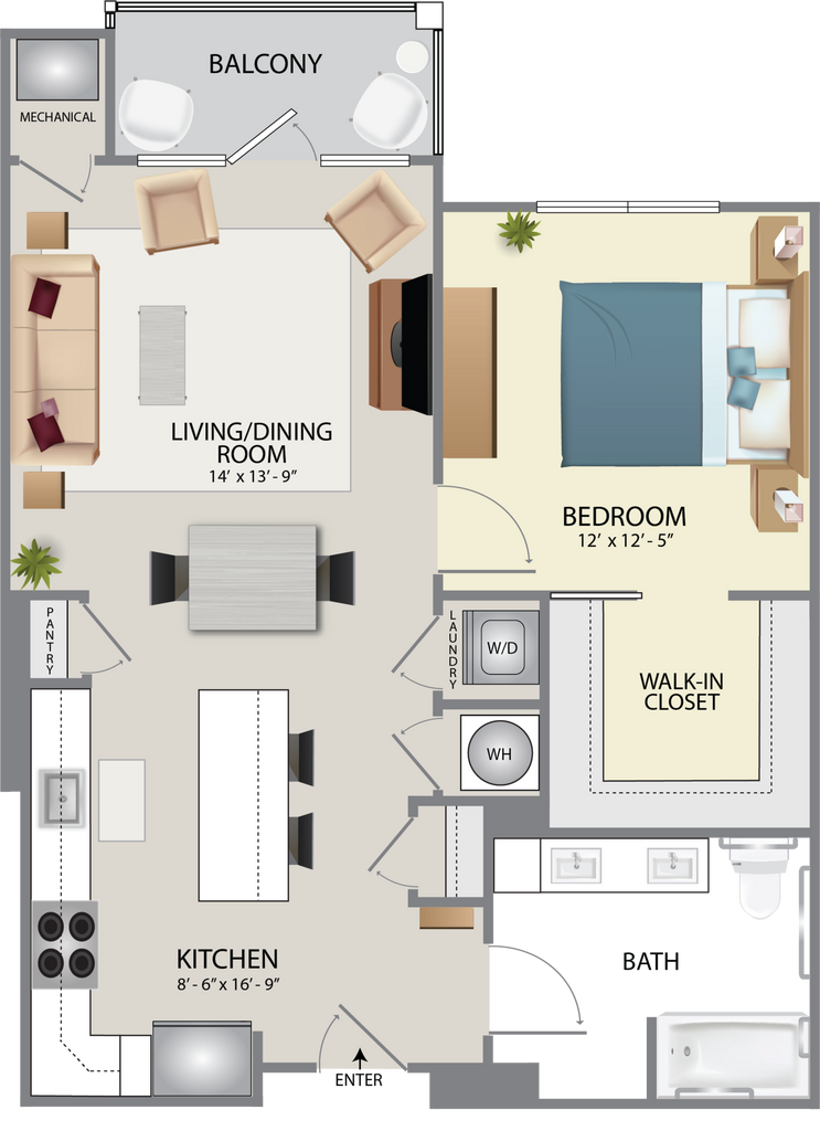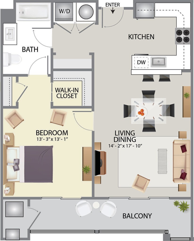 Modelo de apartamento: Reserve A3Desde $2,200Estudio, 1 Baño, 600 sq ftNo Disponible![]()