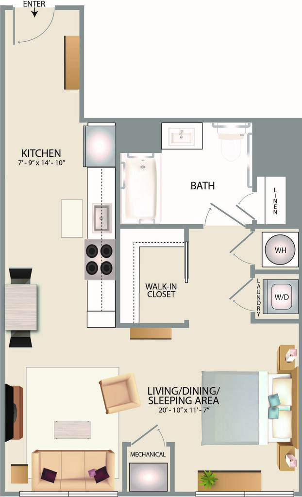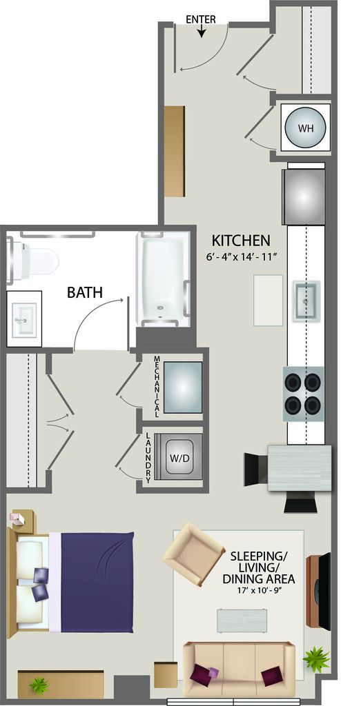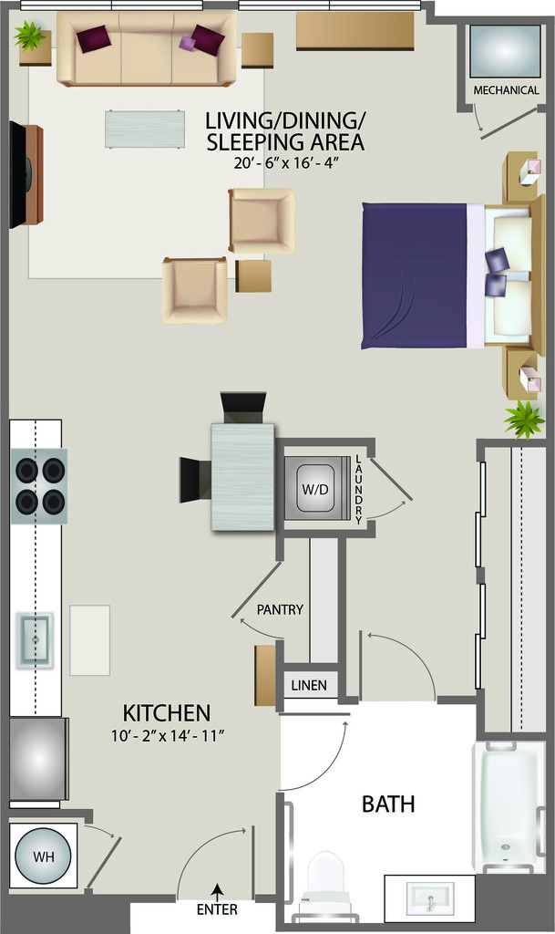 Estudio, 1 Baño, 600 pies²Galería del Modelo