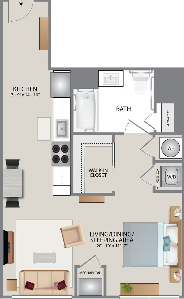 Estudio, 1 Baño, 707 pies²Disponible Dec 20El más grandeEsta opción tiene las unidades más grandes para este modeloGalería del Modelo