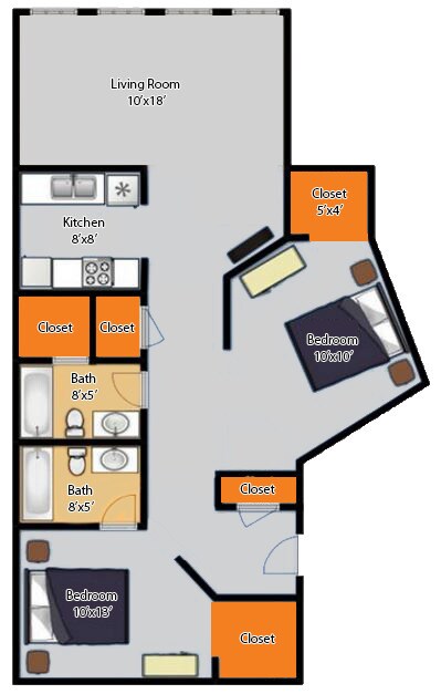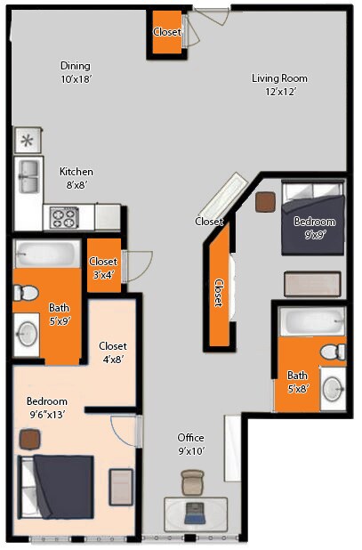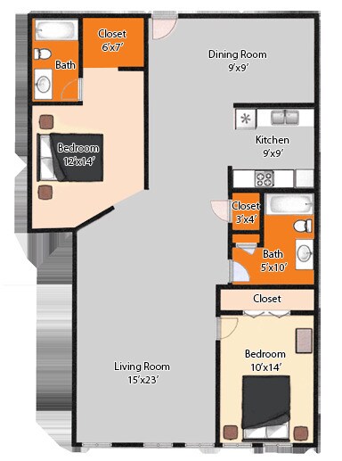 1 Dormitorio, 1 Baño, 924 pies²Disponible AhoraGalería del Modelo