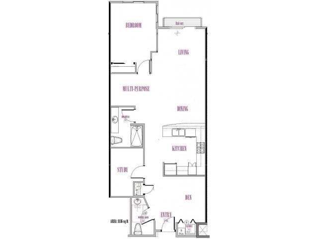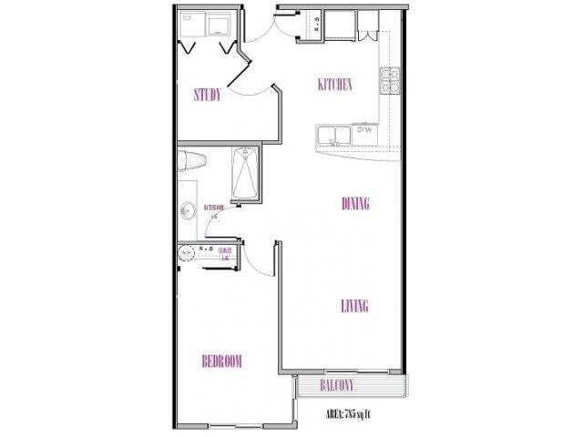 Estudio, 1 Baño, 865 pies²Galería del Modelo