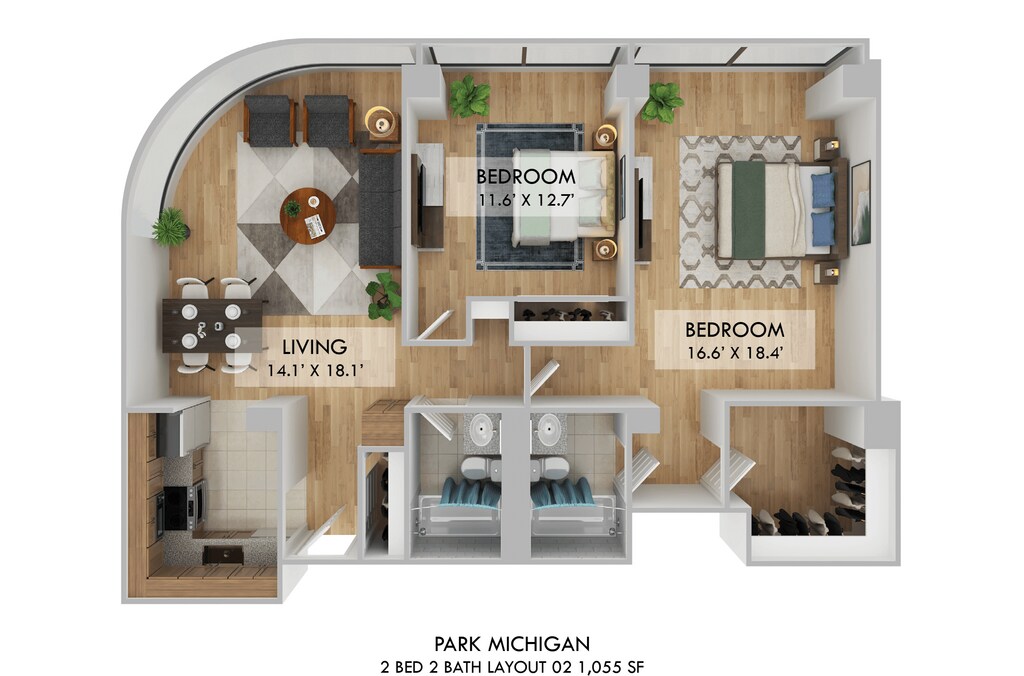 Park Michigan es la experiencia de vida de lujo de la nueva era a tu alcance. La vida mejorada y el diseño hacen que llegar a casa sea un placer. Cada uno de los amplios y luminosos apartamentos cuenta con detalles personalizados y satisface una gran variedad de necesidades. Vistas espectaculares del lago Michigan Avenue, Gran Park, Michigan Ave. y el centro de Chicago.