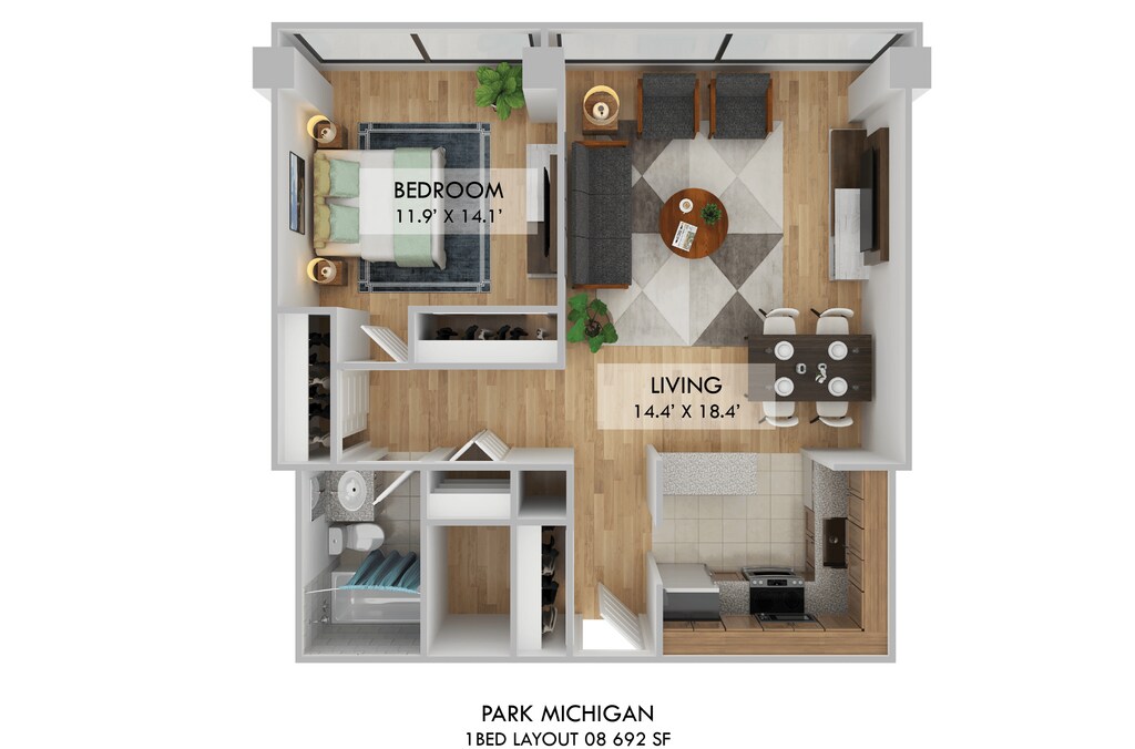 Park Michigan - 1212 S Michigan Ave ofrece apartamentos de Estudio a 2 Dormitorios desde $1,762 con 555–1,055 pies cuadrados. Aquí está el precio actual y la disponibilidad:
