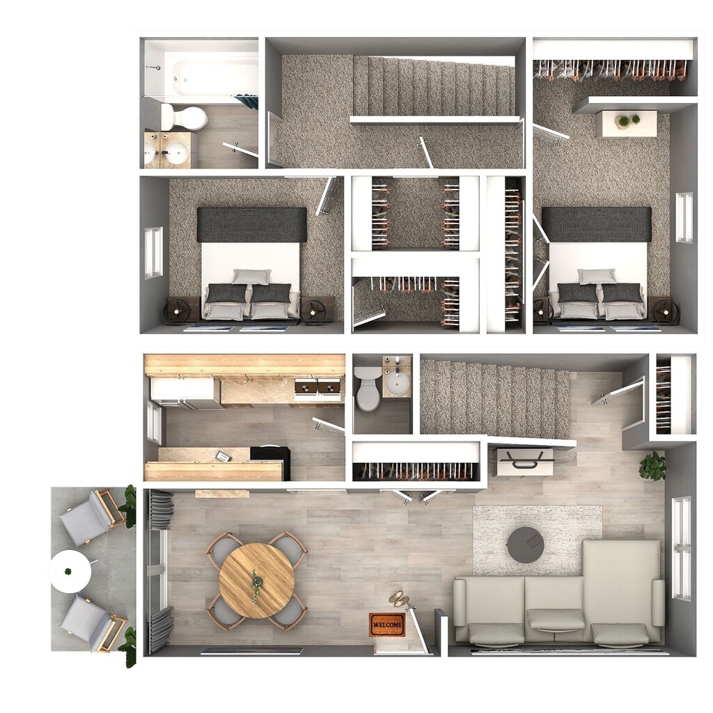 2 Dormitorios, 1.5 Baños, 887 pies²Disponible AhoraGalería del Modelo