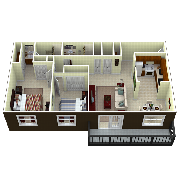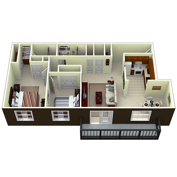 2 Dormitorios, 2 Baños, 1200 pies²Galería del Modelo
