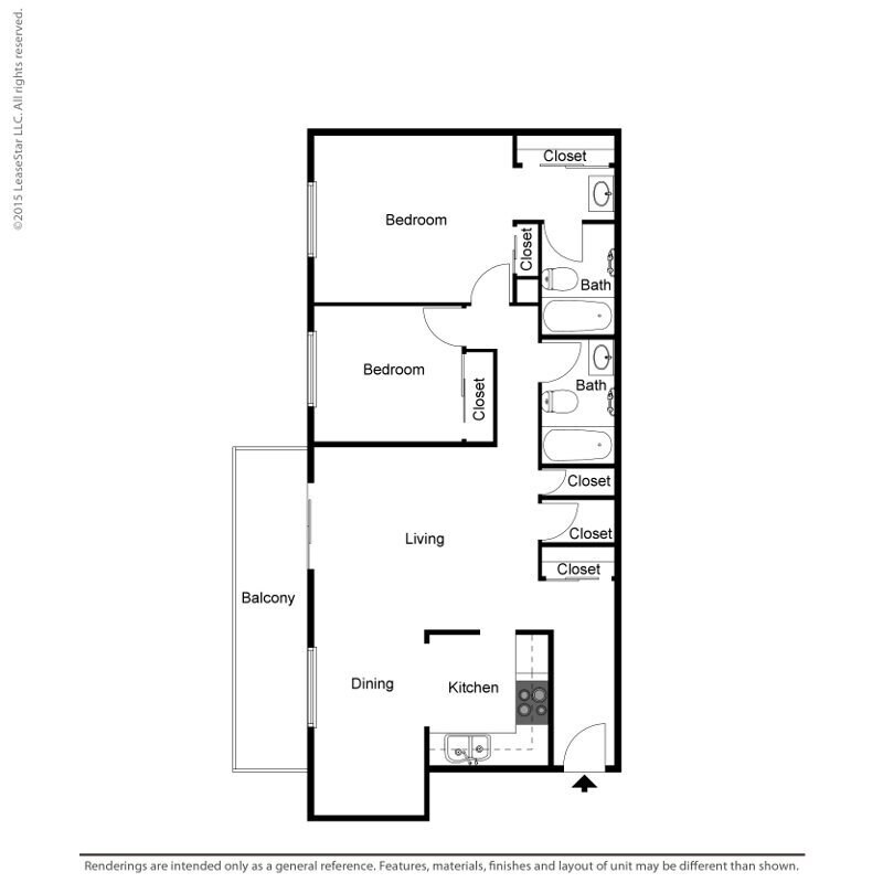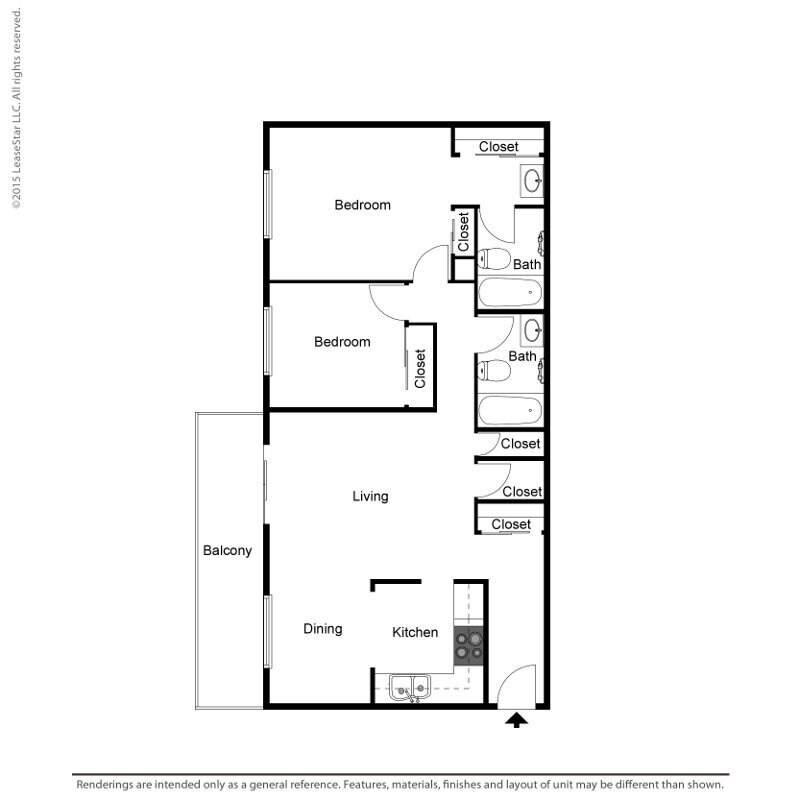 2 Dormitorios, 2 Baños, 1100 pies²Disponible AhoraGalería del Modelo