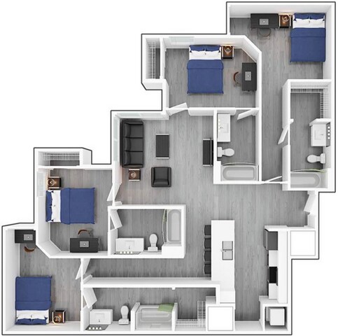 Modelo de apartamento: 4x4 Corner4 Dormitorios, 4 Baños, 1464 sq ftDisponible Ahora![]()