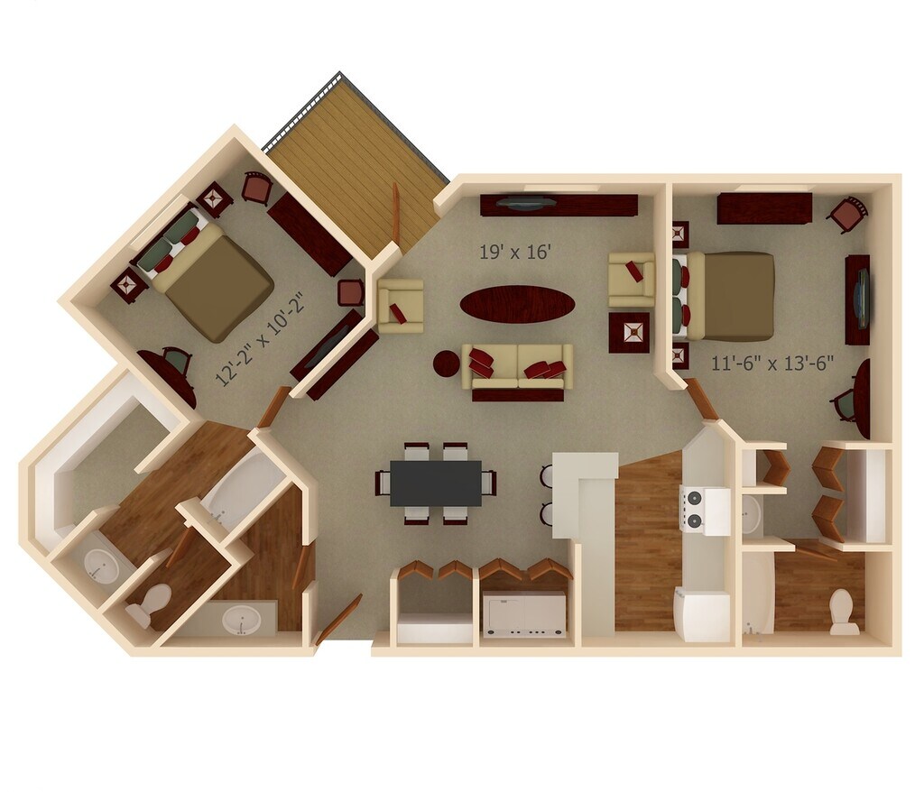 Modelo de apartamento: Delta 2BD-2BA2 Dormitorios, 2 Baños, 1031 sq ftDisponible Ahora![]()