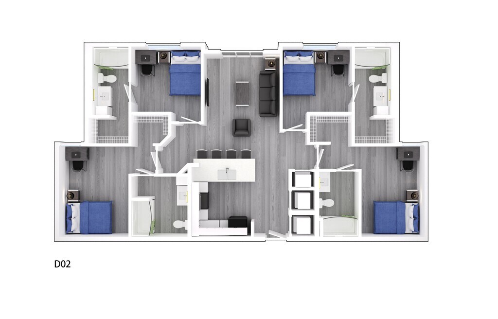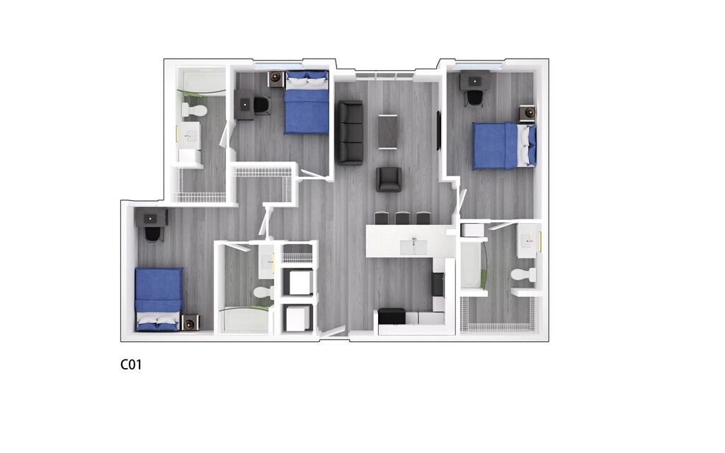 Modelo de apartamento: 4x4 Style 34 Dormitorios, 4 Baños, 1354 sq ftDisponible Ahora![]()