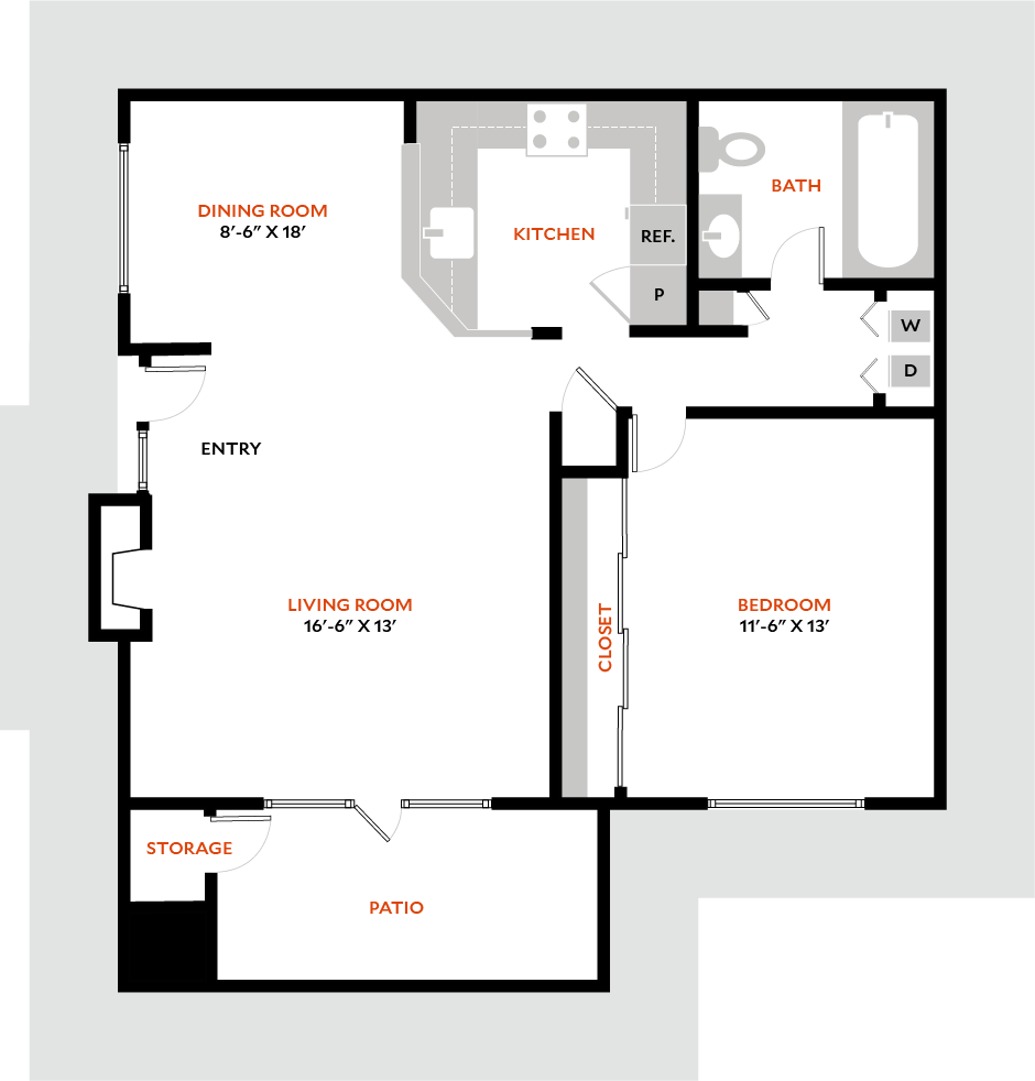 1 Dormitorio, 1 Baño, 700 pies²Disponible AhoraGalería del Modelo