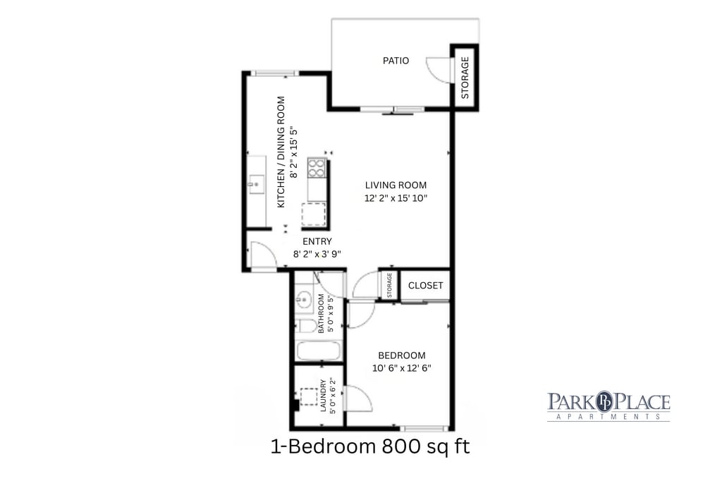 1 Dormitorio, 1 Baño, 800 pies²Disponible AhoraGalería del Modelo
