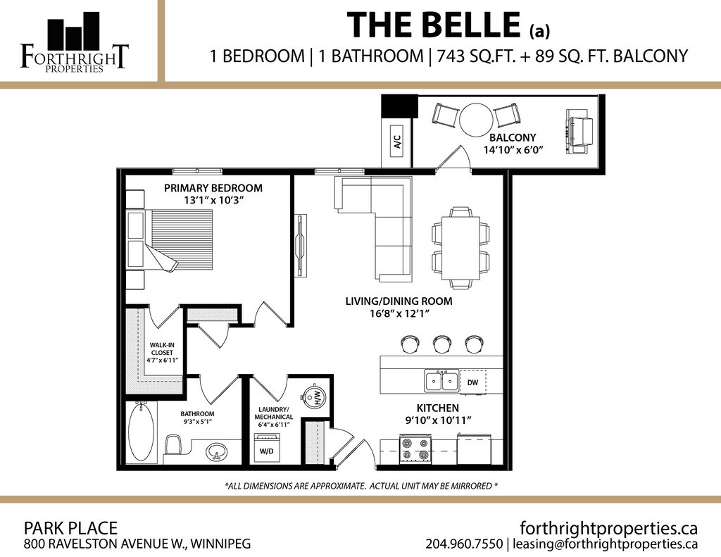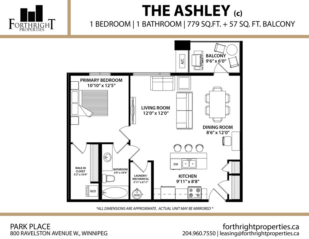 Modelo de apartamento: Ashley v. C$1,5861 Dormitorio, 1 Baño, 779 sq ftDisponible AhoraPlanosFotos3D Tours![]()