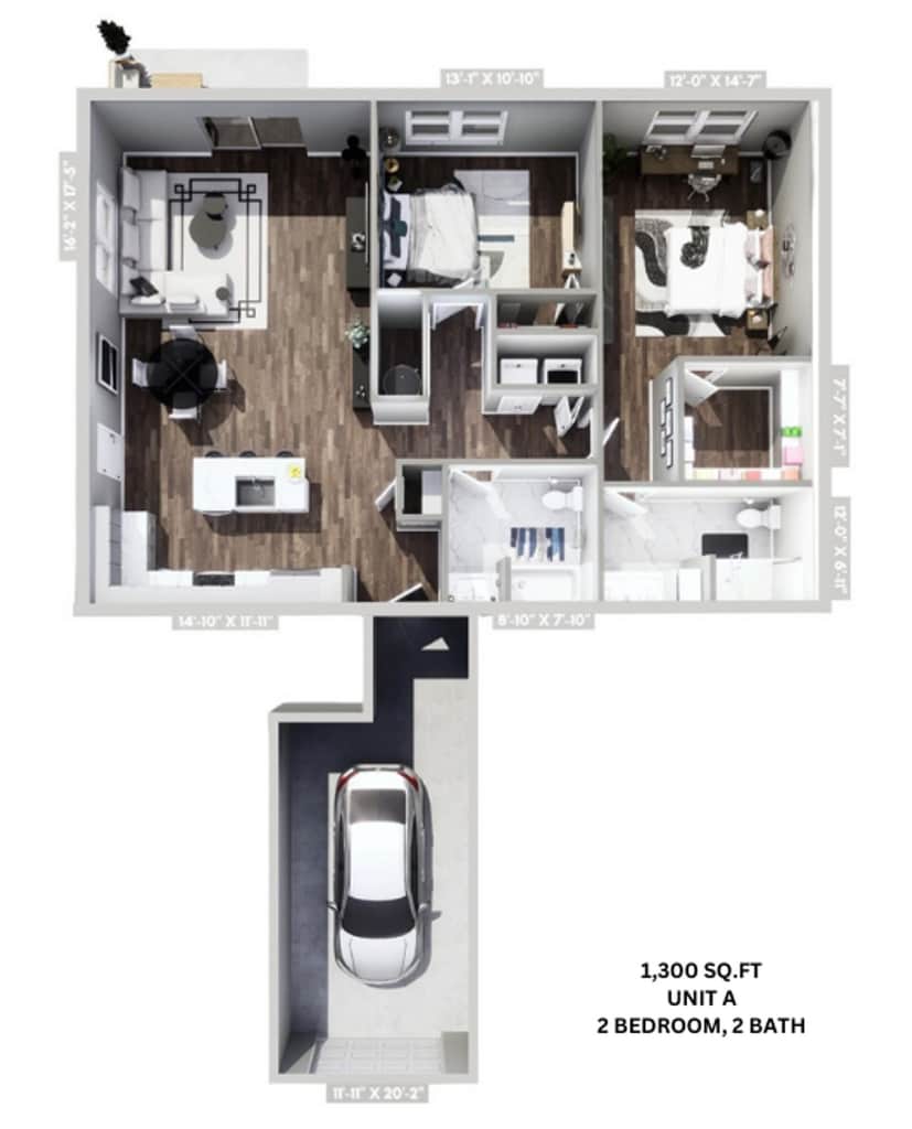 2 Dormitorios, 2 Baños, 1300 pies²Disponible May 11Galería del Modelo