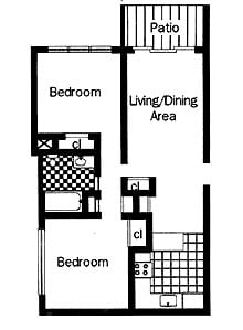 Modelo de apartamento: Garden$8052 Dormitorios, 1 Baño, 828 sq ftNo Disponible![]()