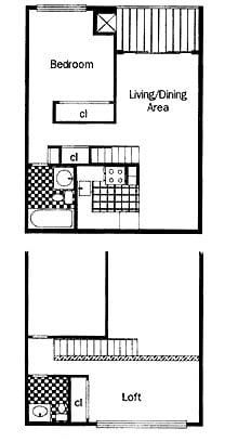 Modelo de apartamento: Loft$7451 Dormitorio, 1.5 Baños, 866 sq ftNo Disponible![]()