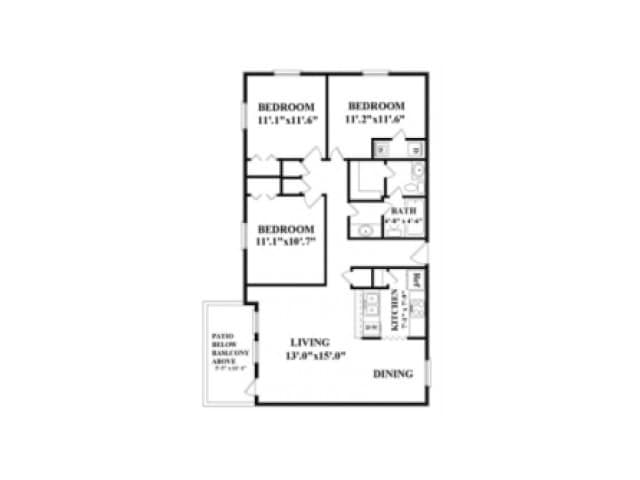 Modelo de apartamento: 3-1Desde $1,0603 Dormitorios, 1.5 Baños, 1073 sq ftNo Disponible3-1 - Plano 1