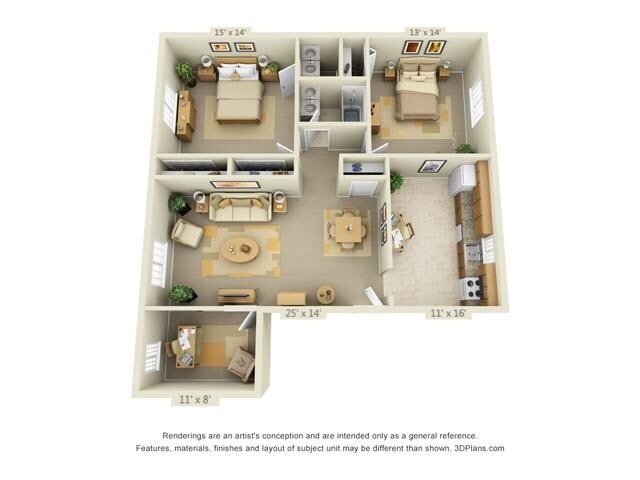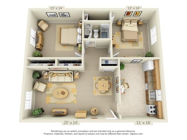 Modelo de apartamento: 2 BedroomDesde $1,2402 Dormitorios, 1 Baño, 700-1035 sq ftNo Disponible![]()