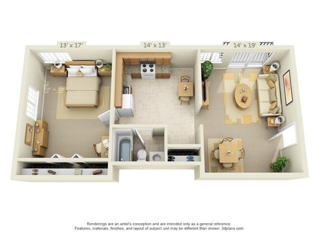 Modelo de apartamento: 1 BedroomDesde $1,2051 Dormitorio, 1 Baño, 575-675 sq ftNo Disponible![]()