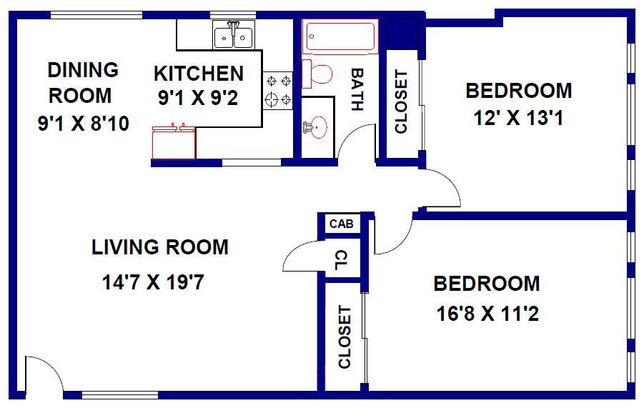 2BR/1.0BA - Imagen 10 Unidad de apartamento: 13Modelo de apartamento: 2BR/1.0BA$2,0492 Dormitorios, 1 Baño, 961 sq ftDisponible Ahora![]()