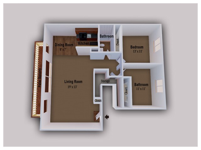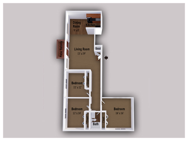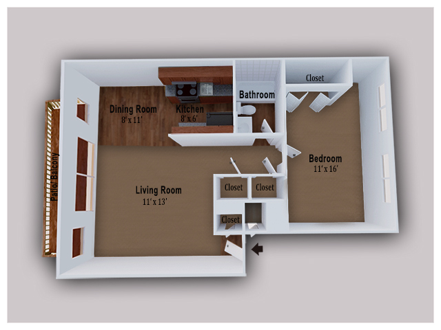 1 Dormitorio, 1 Baño, 750 pies²Disponible AhoraGalería del Modelo