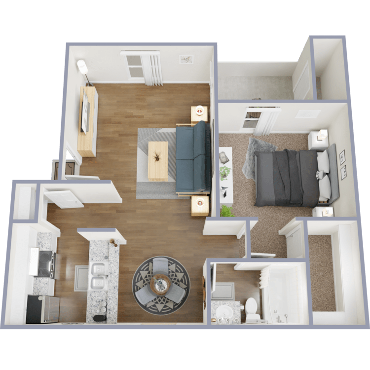 Modelo de apartamento: 1 Bed 1 BathDesde $9491 Dormitorio, 1 Baño, 690 sq ftDisponible Ahora![]()