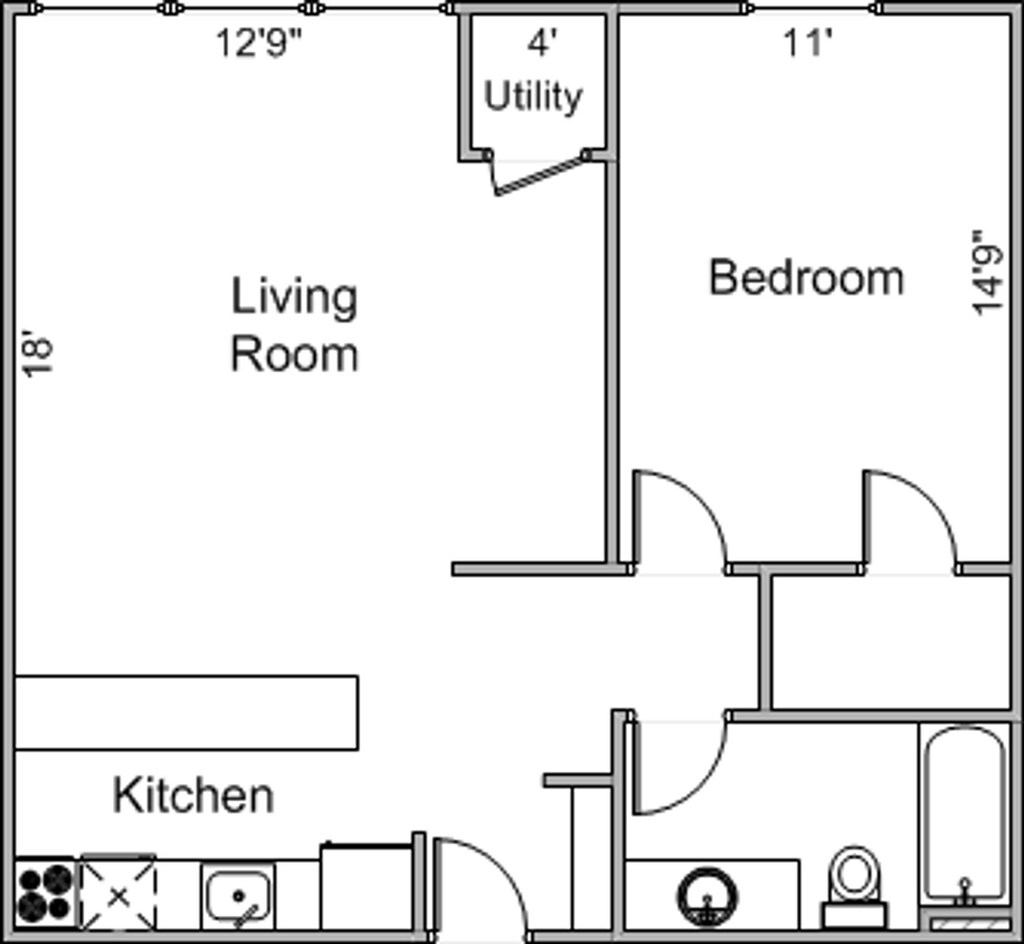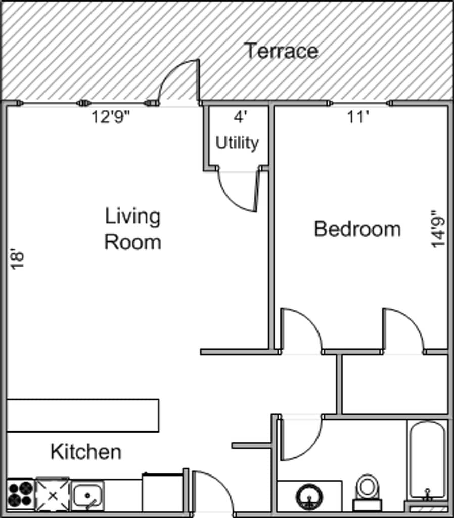 1 Dormitorio, 1 Baño, 500-730 pies²Disponible August 15, 2026Detalles de Diponibilidad