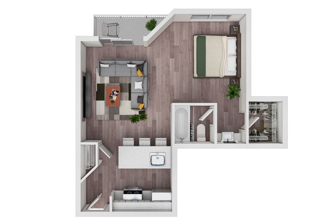 1 Dormitorio, 1 Baño, 519 pies²Disponible AhoraGalería del Modelo