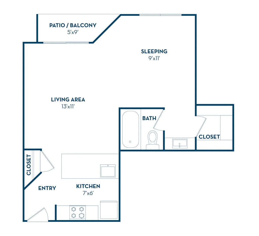 Modelo de apartamento: CascadeDesde $9921 Dormitorio, 1 Baño, 519 sq ftDisponible Ahora![]()