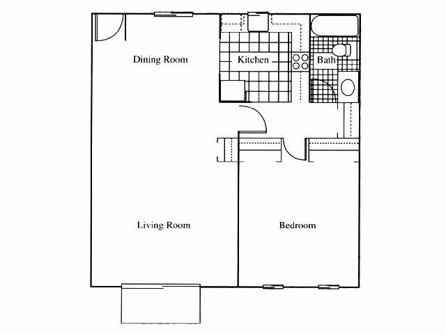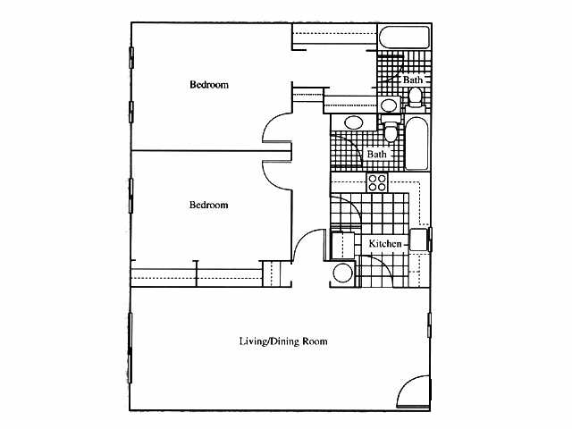 Modelo de apartamento: 1x1Desde $1,1501 Dormitorio, 1 Baño, 750 sq ftDisponible Ahora1x1 - Plano 1 2 Dormitorios