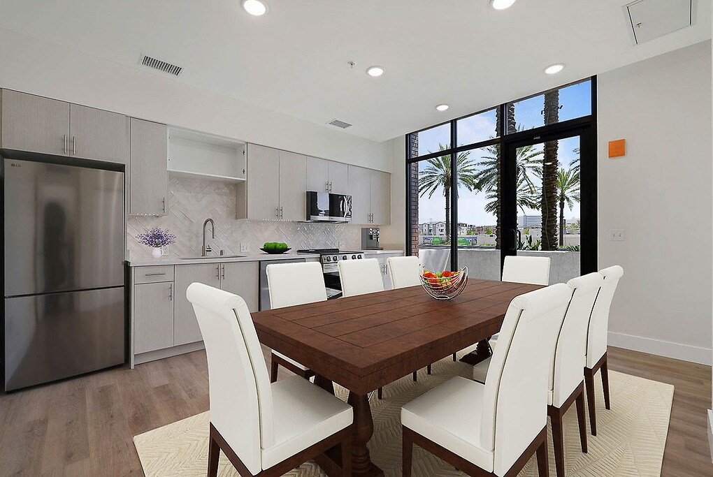 Los apartamentos de Park Viridian, ubicados en el distrito de Platinum Triangle de Anaheim, CA, ofrecen la combinación perfecta de comodidad interior, comodidad excepcional y comodidades sofisticadas. Nuestro complejo cuenta con 17 planos de planta diferentes tipo estudio, de 1 y 2 habitaciones con dos impresionantes paquetes de acabados interiores, por lo que es fácil encontrar un hogar perfecto para ti. Cada apartamento cuenta con una cocina completamente equipada con estufa a gas y una lavadora y secadora. Las casas seleccionadas tienen acabados de estilo moderno con encimeras de granito y electrodomésticos de acero inoxidable. Nuestro complejo ofrece una gran cantidad de comodidades para tu comodidad y disfrute. Relájate con amigos en la casa club del complejo y disfruta de un partido en el televisor de 60 in. Relájate en la piscina con cabañas y spa. Haz ejercicio en uno de nuestros dos gimnasios en el complejo, equipado con características de última generación tales como clases de gimnasia a pedido, bicicletas, cuerdas, pesas libres, equipos de entrenamiento cardiovascular y un área de yoga. Incluso puedes mimar a tus amigos de cuatro patas en nuestro spa comunitario para mascotas. Justo afuera de nuestros terrenos, disfruta de los negocios, los restaurantes, las tiendas y el entretenimiento por los que se conoce Platinum Triangle. Además, con una ubicación entre las autopistas 5 y 57 y a una milla de distancia del centro ARTIC, el viaje diario será muy fácil.