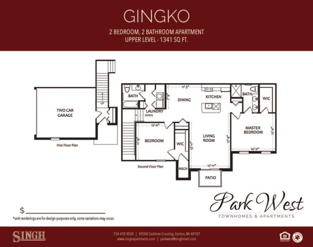 Gingko - Plano 2 Unidad de apartamento: 5814Modelo de apartamento: Gingko$2,4212 Dormitorios, 2 Baños, 1341 sq ftDisponible December 13, 2025Beech