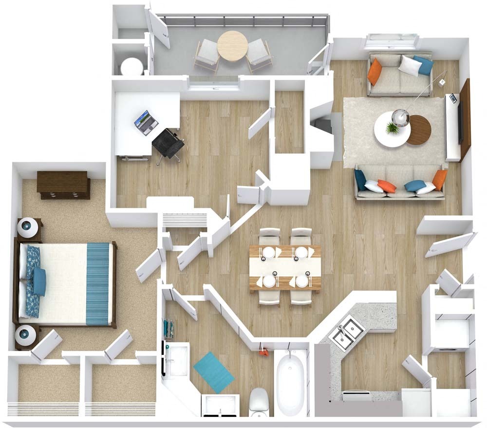 Modelo de apartamento: The OakDesde $1,9302 Dormitorios, 2 Baños, 1252 sq ftDisponible Ahora![]()