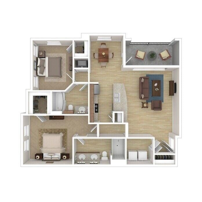 2 Dormitorios, 2 Baños, 1294 pies²Disponible AhoraEl más grandeEsta opción tiene las unidades más grandes para este modeloGalería del Modelo