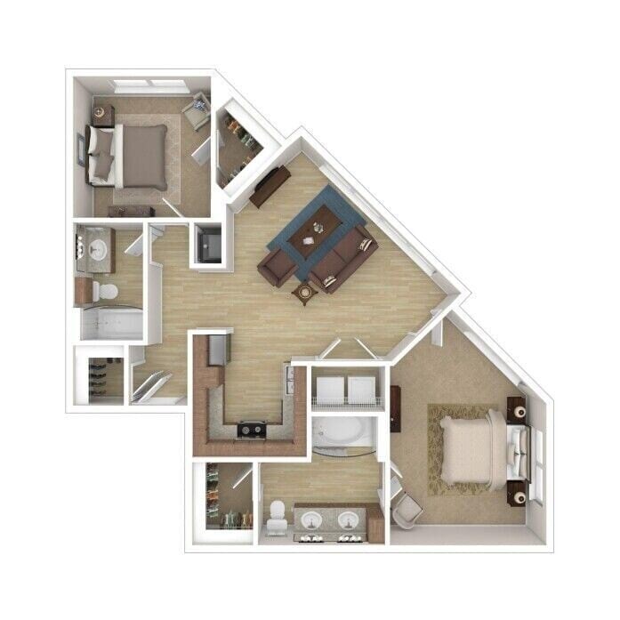 Modelo de apartamento: B1Desde $1,5422 Dormitorios, 2 Baños, 982 sq ftDisponible Ahora![]()