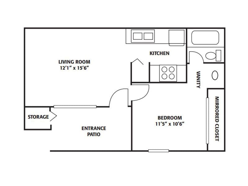 1 Dormitorio, 1 Baño, 480 pies²Disponible AhoraGalería del Modelo
