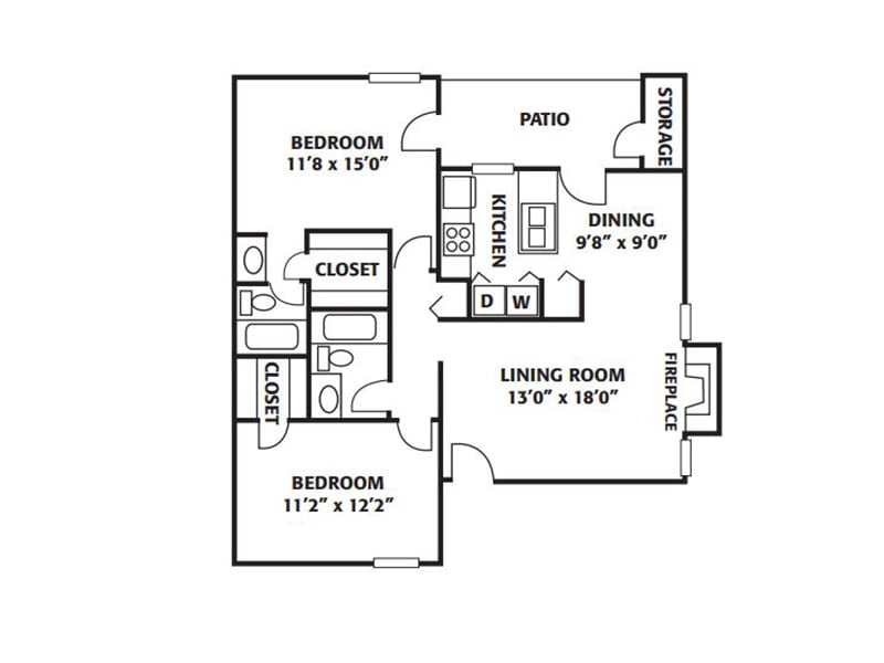 Modelo de apartamento: 2x2Desde $1,5042 Dormitorios, 2 Baños, 1000 sq ftDisponible Ahora![]()
