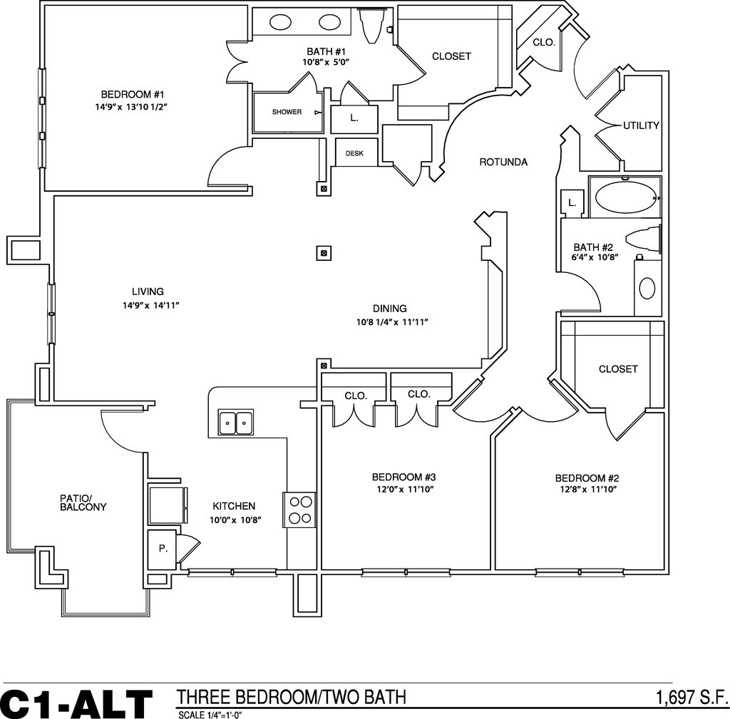 Fecha Disponibilidad Unidad Pies² Depósito No Disponible C1-3 1697 pies² $300 Modelo de apartamento: C1-33 Dormitorios, 2 Baños, 1697 sq ftNo Disponible![]()