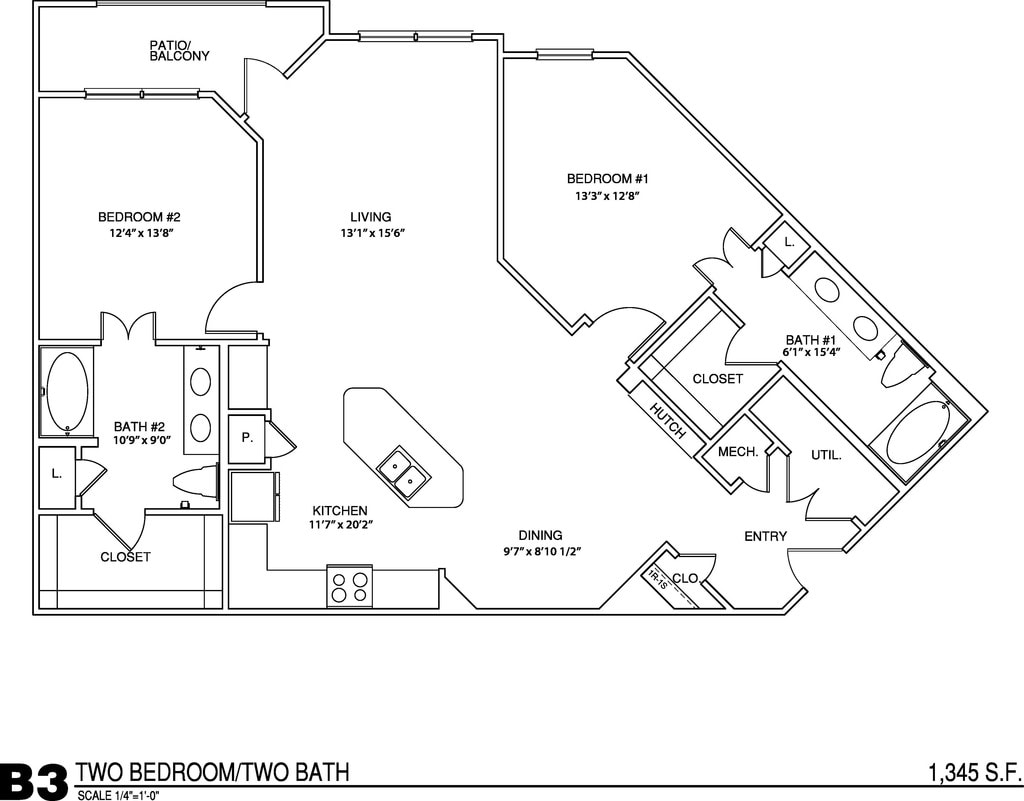 2 Dormitorios, 2 Baños, 1345 pies²Galería del Modelo
