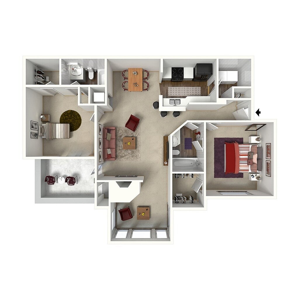 Modelo de apartamento: HawthornDesde $1,2492 Dormitorios, 2 Baños, 1129 sq ftDisponible Ahora![]()
