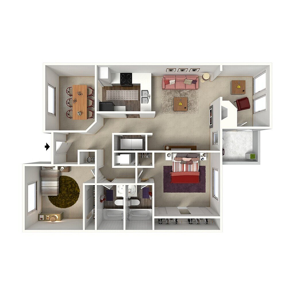 2 Dormitorios, 2 Baños, 1300 pies²Disponible AhoraEl más grandeEsta opción tiene las unidades más grandes para este modeloGalería del Modelo