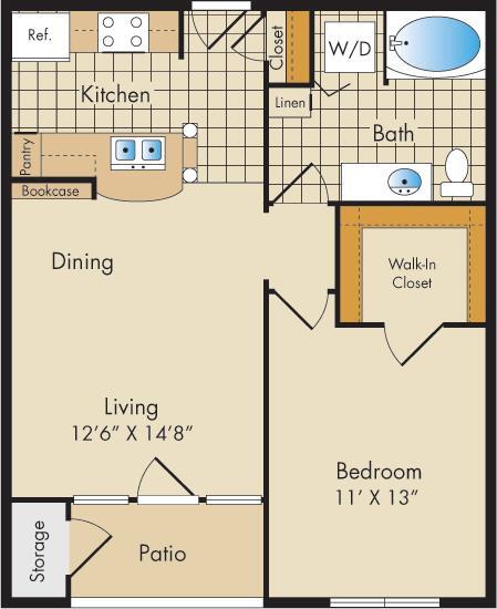 Modelo de apartamento: ADesde $1,0051 Dormitorio, 1 Baño, 647 sq ftDisponible Ahora![]()