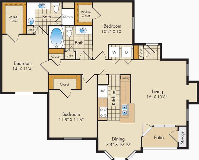 Modelo de apartamento: CDesde $1,2851 Dormitorio, 1 Baño, 796 sq ftDisponible Ahora![]()