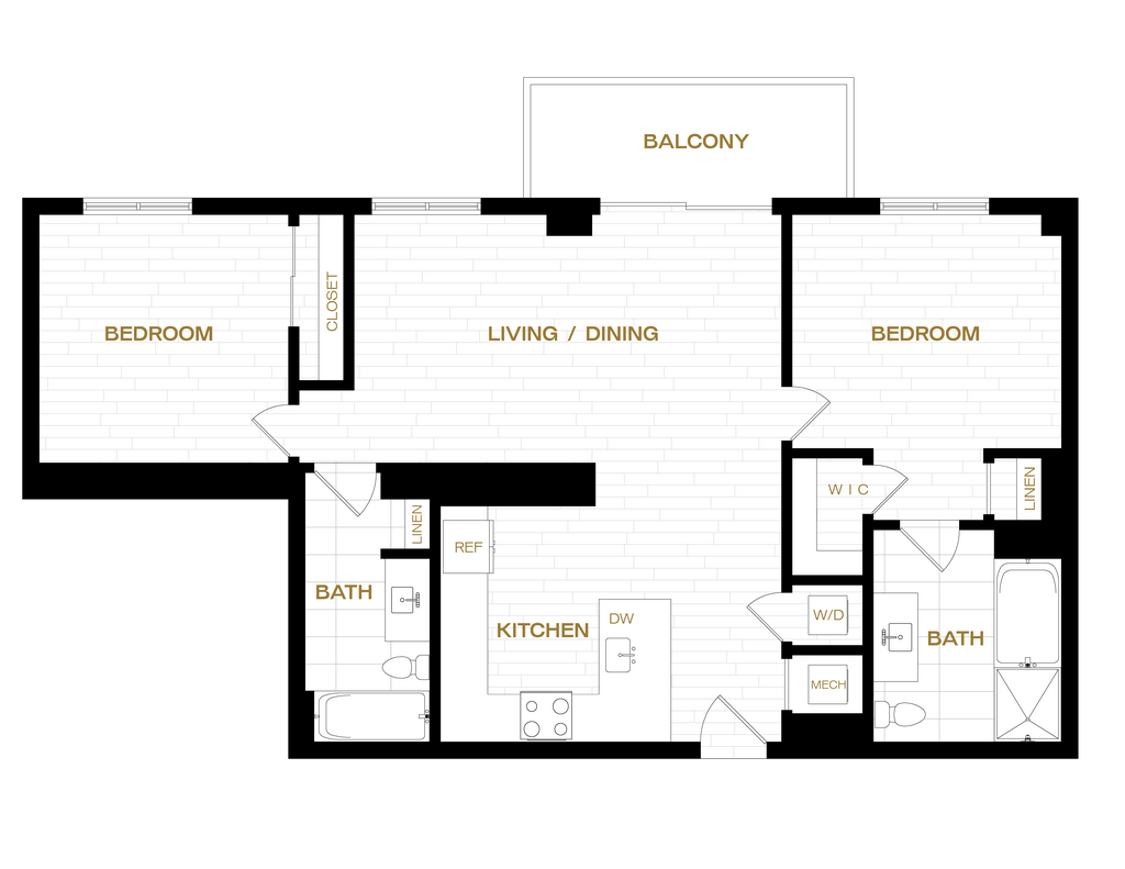 Modelo de apartamento: 1 Bed/1 Bath-A10Desde $3,5971 Dormitorio, 1 Baño, 767 sq ftDisponible Ahora![]()