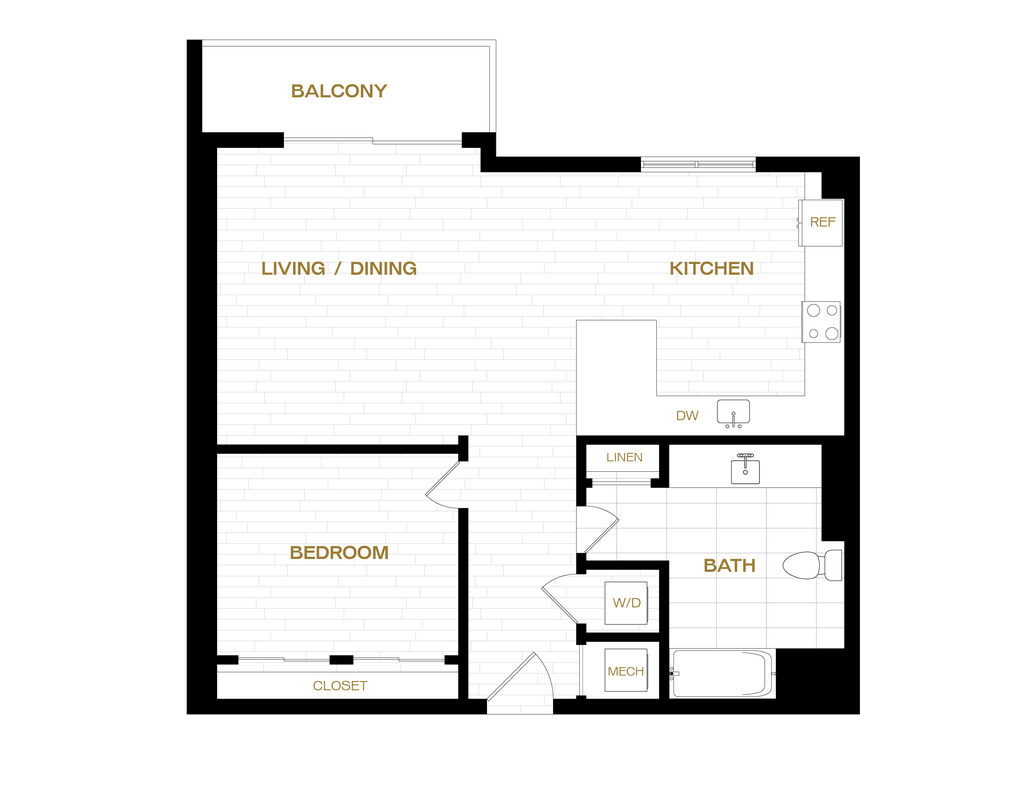 1 Dormitorio, 1 Baño, 767 pies²Disponible AhoraGalería del Modelo