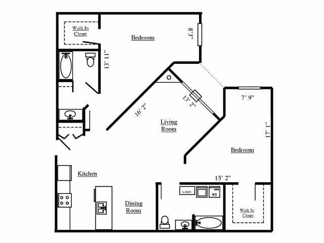 Modelo de apartamento: 2 Bed/ 2 BathDesde $1,1902 Dormitorios, 2 Baños, 1250 sq ftDisponible November 5, 20252 Bed/ 2 Bath - Plano 1