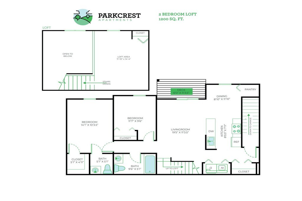 2 Bed, 1.5 Bath - 866 sq ft - Plano 1 2 Bed, 1.5 Bath Loft - 1,112 sq ft