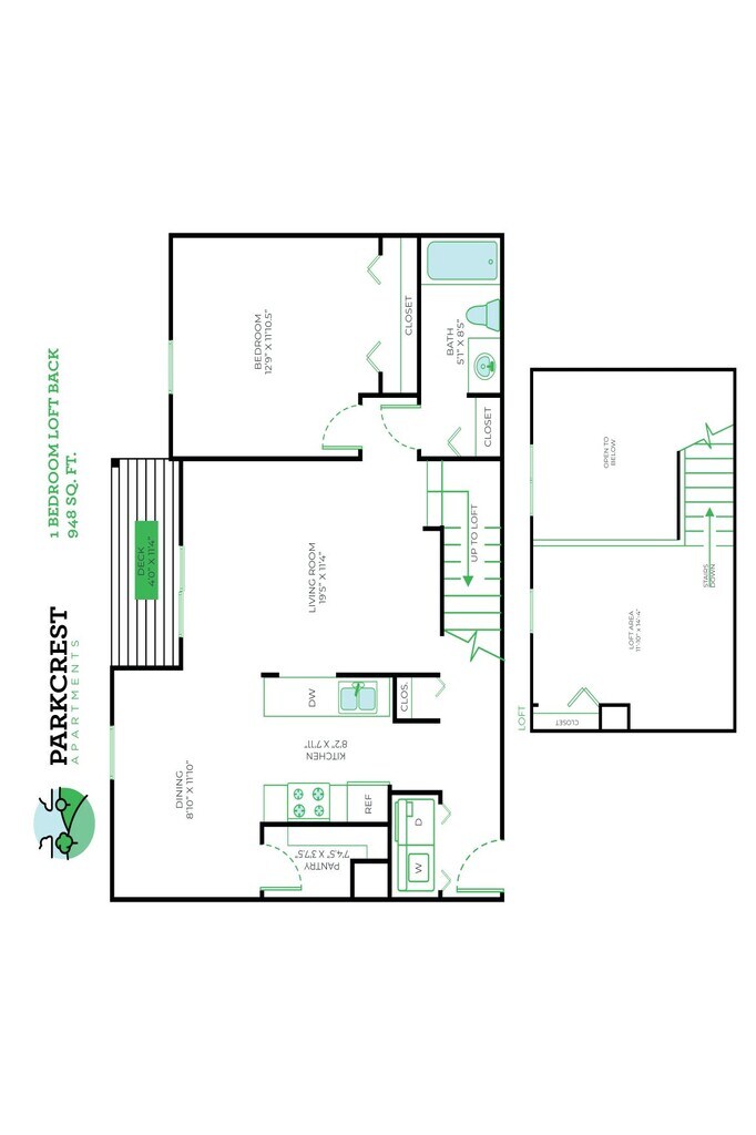 1 Bed, 1 Bed Loft - 862 sq ft - Plano 1 1 Bed, 1 Bath Loft - 948 sq ft