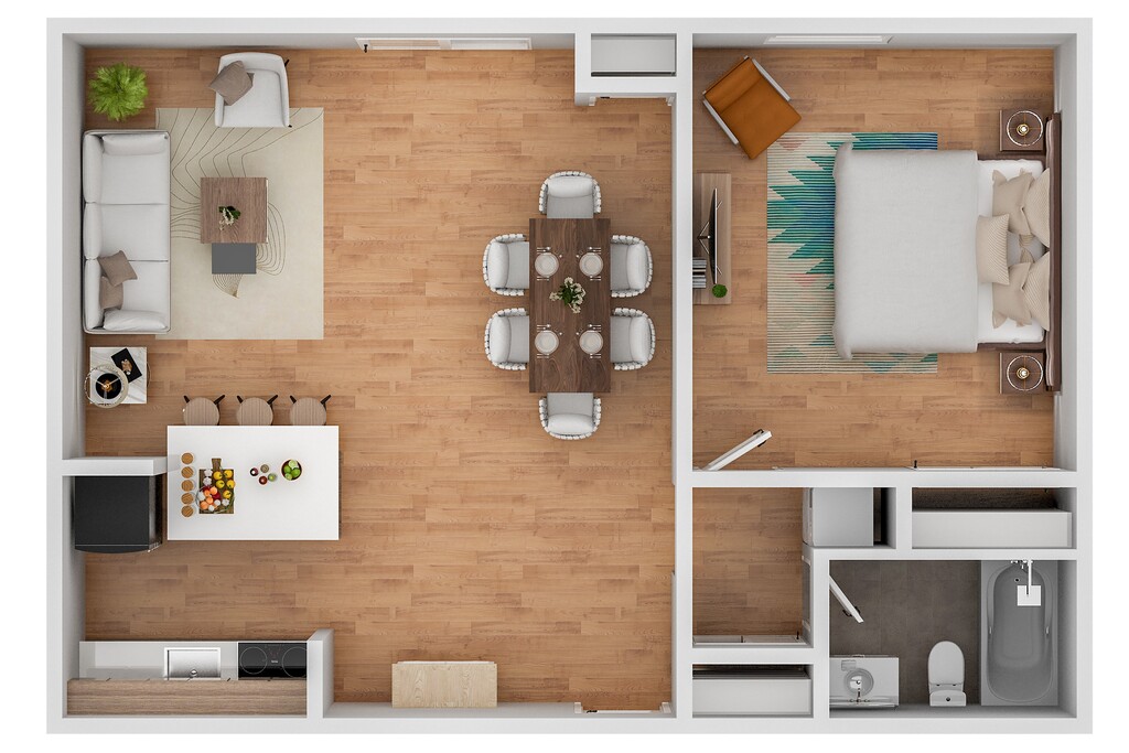 1 Dormitorio, 1 Baño, 800 pies²Disponible AhoraGalería del Modelo